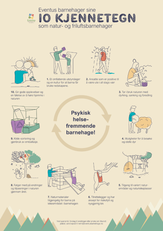 Formelt sett finnes det ingen fast definisjon på hva en "natur- og friluftsbarnehage" er. Derfor har vi satt sammen 10 kjennetegn som vi mener definerer oss som natur- og friluftsbarnehager: